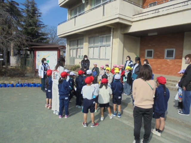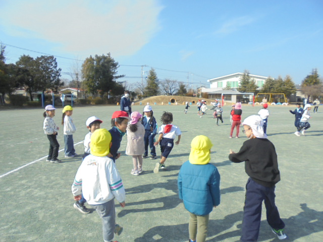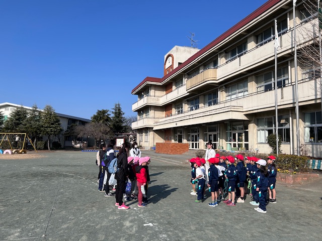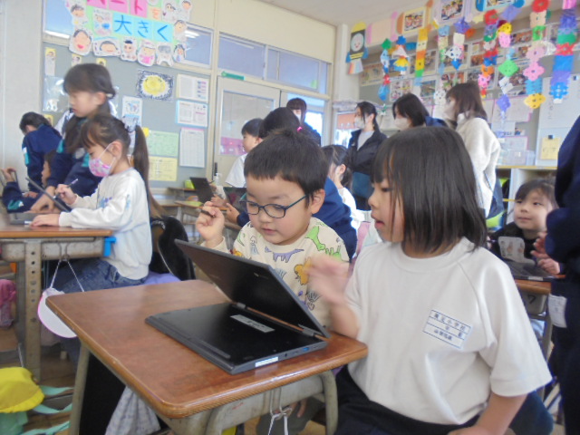 1月23日(木曜日)騎西保育所、騎西中央幼稚園の子供たちが来校し、1年生と交流会を行いました。始めに、学校で使っている学習用端末を使って、絵を描きました。その後、校庭で氷おにをして遊びました。1年生は、優しく声を掛け、教えたり、遊んだりすることができました。短い時間でしたが、充実した交流ができました。