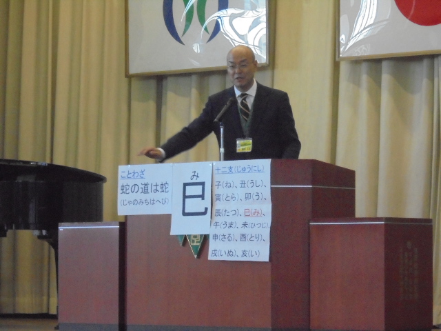 校長式辞は、今年の干支である巳年にちなみ、「蛇の道は蛇」ということわざを取り上げた内容でした。