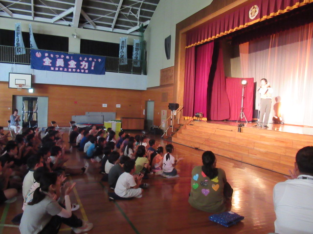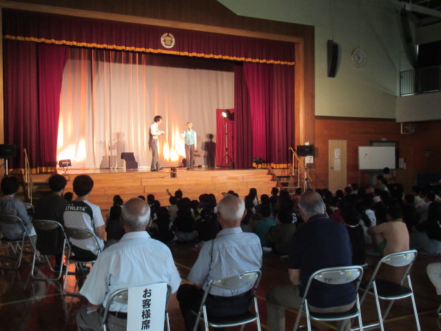 学校巡回公演として「カンジヤママイム」の皆様に「おしゃべりなパントマイム」という舞台を披露していただきました。当日は保護者の方や地域の方にも御来校いただき、楽しいひとときを過ごせました。こども達は目の前でくり広がられる「本物の芸術」に感動していました。