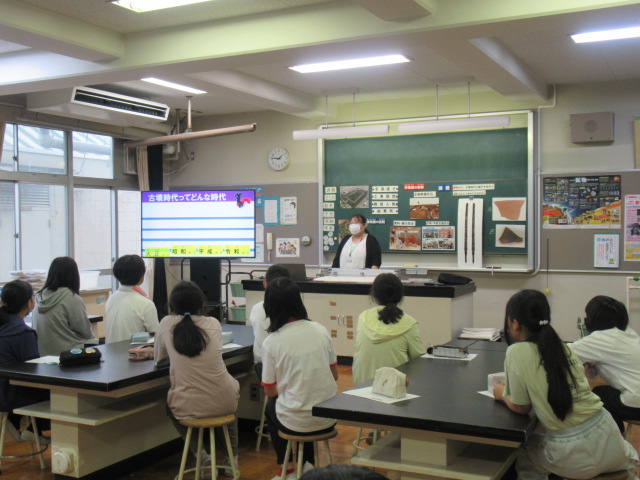 さいたま史跡の博物館からゲストティーチャーをお招きして、6年生が古墳について学びました。たくさんの資料を前に、児童は目をキラキラ輝かせていました。